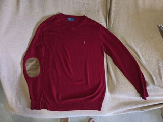 Jersey de manga larga de Polo Ralph Lauren en color rojo. Presenta parches en los codos. - Cuello en V. Lana - Logo del jugador de polo bordado en el pecho.