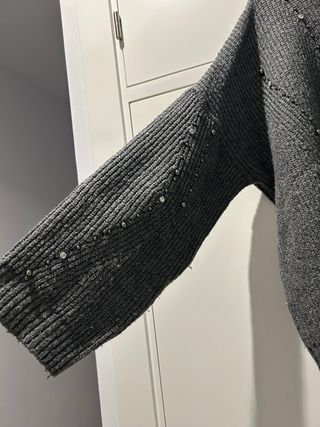 Jersey gris oversize con pedrería