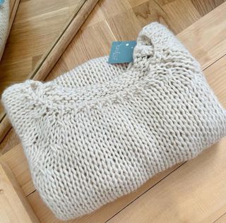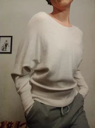 Jersey de lana en color crudo, con un diseño de canalé que le da textura. Muy suave. - Cuello redondo. - Manga larga. Es de Pull&Bear pero se corto la etiqueta
