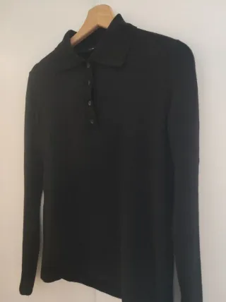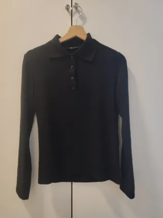 Jersey de Zara / de manga larga / Cuello tipo polo con cierre de botones en la parte superior / color negro / talla M /en perfecto estado