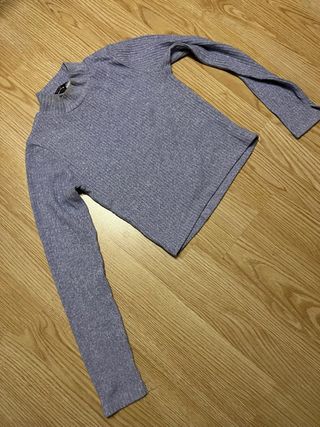 Jersey de manga larga con cuello alto y tejido acanalado. - Color morado jaspeado. - Material elástico y suave. - Talla XS Stradivarius (ES) - Cuello desgastado 💵Solo se admite pago en efectivo💵