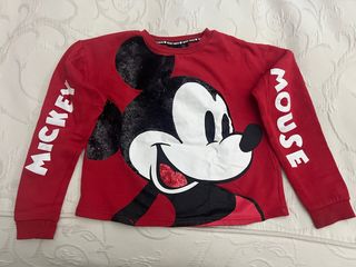 Jersey de manga larga para niña con el personaje Mickey Mouse. - Diseño frontal de Mickey Mouse con lentejuelas. - Texto MICKEY MOUSE en las mangas. - Color rojo.