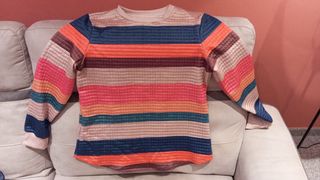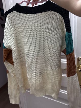Jersey de punto con un diseño vibrante y alegre. - Cuello alto. - Manga larga. - Tejido con textura. Usado un par de veces, tipo Oversize, aunque en mi caso lo llevo mas pegado pues uso la M