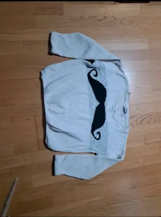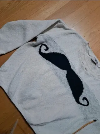 Jersey de punto con un divertido estampado de bigote en contraste. Ideal para un look casual y original. - Diseño de manga larga. - Cuello redondo.