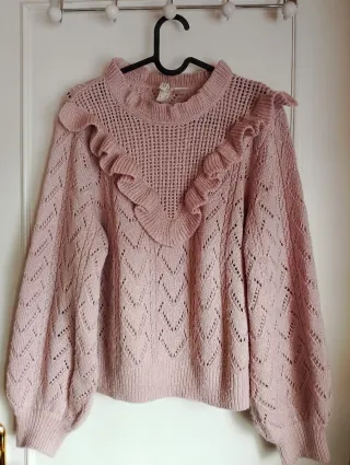 Jersey rosa punto calado volantes