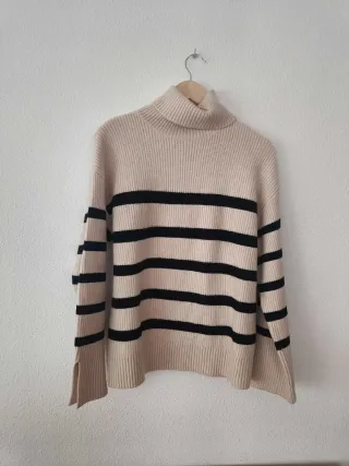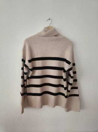 Jersey de cuello alto con un diseño de rayas horizontales. - Manga larga. - Cuello alto acanalado. - Diseño a rayas.