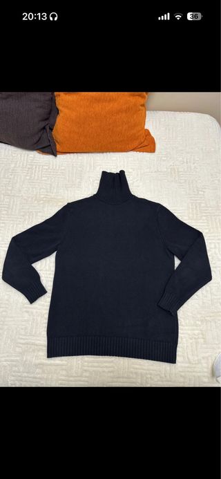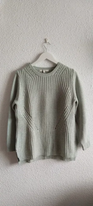 Jersey de punto fino de la marca Cortefiel. - Cuello redondo. - Manga larga. - Tejido suave al tacto. - No indica la talla pero es una M.