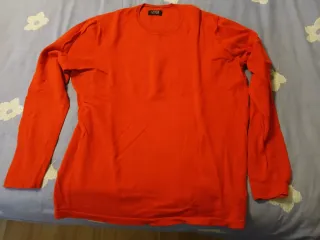 Jersey de manga larga de la marca LEFTEIS de Algodón. - Tejido suave y ligero. - Color rojo vibrante. - Cuello redondo. - Talla XL. - Medidas: Axilas: 60 cm. Hombros: 46 cm. Largo: 72 cm.