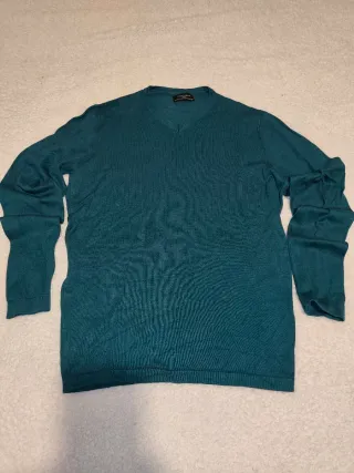 Jersey Zara Hombre Azul Petróleo Cuello Pico