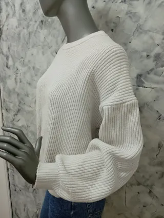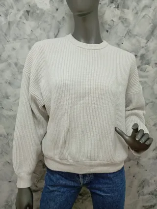 Jersey de punto grueso de Zara. - Manga larga. - Cuello redondo. - Corte holgado., Oversize y hombros caídos. - Medidas. Axila:56. Largo:54cm - Color: Blanco Roto.