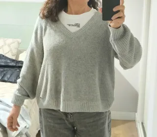 Jersey de punto de manga larga con cuello en V. Talla XS, oversize - Diseño de canalé. - Puños y bajo acanalados. - Tejido suave y cómodo.