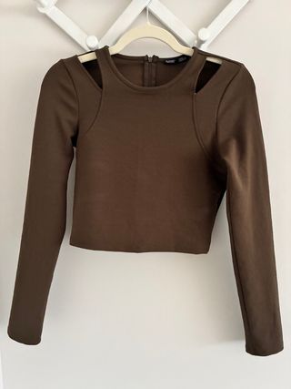 Jersey de manga larga con un diseño moderno y atrevido. Perfecto para añadir un toque chic a tu armario. - Escote redondo. - Aberturas en los hombros. - Cremallera en la espalda.
