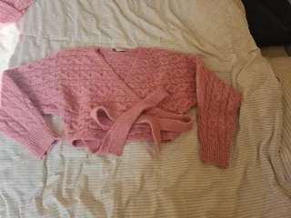 Jersey corto de punto con un diseño trenzado muy bonito. Es de la marca Zara y talla M. Se cierra con una lazada al rededor de la cintura. - Tejido suave y agradable. - Diseño cruzado con lazada. - Mangas largas abullonadas.