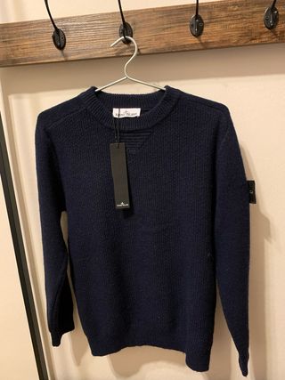 Jersey de punto de Stone Island en color azul marino. Presenta un diseño texturizado y cuello redondo. - Cuello redondo. - Manga larga. - Tejido texturizado. Largo 67 Ancho de sisa a sisa 49 Manga ( desde el cuello del jersey al final del puño ) 69