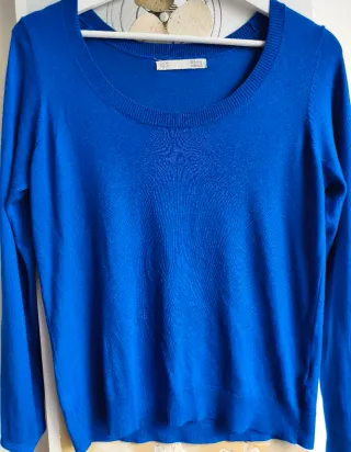 Jersey de punto fino en un llamativo color azul eléctrico. Ideal para añadir un toque de color a tu armario. - Cuello redondo. - Manga larga. - Tejido suave y ligero. Dos puestas, como nuevo