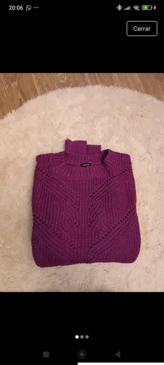 Jersey de manga larga, moderno y elegante. Nunca puesto, siempre en armario no se ha llegado a usar. - Tejido suave y confortable es aterciopelado con brillo natural elegante y casual. - Mangas abullonadas terminadas en goma elástica - Talla Medíana, 38 - Corte cropped.