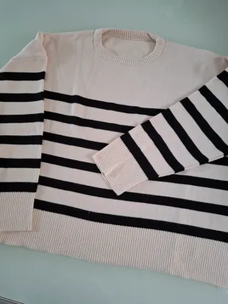 Jersey de rayas blanco y negro ..Es ancho y corto