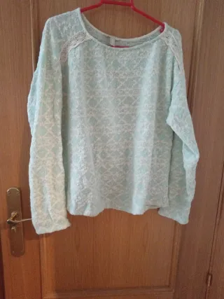 Jersey de manga larga con un bonito diseño. - Tejido texturizado con estampado. - Detalles de encaje en los hombros. - Cuello redondo.