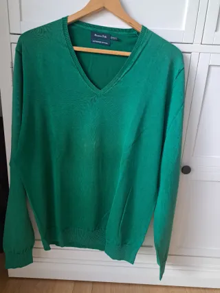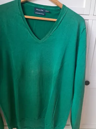 Jersey de cuello pico de la marca Massimo Dutti. - Tejido Extrafine Cotton. - Color verde vibrante. - Manga larga.