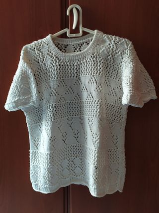 jersey de punto hecho a mano. Hilo de algodón. Manga corta. Al ser hecho a mano no tiene talla. Medidas (ver fotos): - Ancho 100cm - Largo 59cm NO REBAJO NO INTERCAMBIO