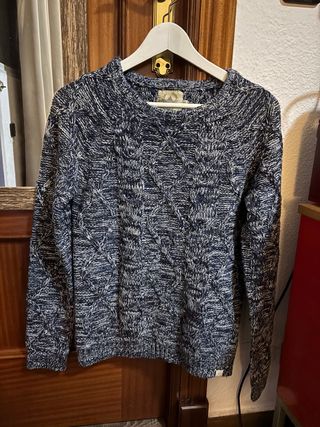 Jersey trenzado azul y blanco
