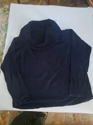 Jersey de cuello alto con mangas de punto y detalle de pelo en el delantero. Es una L pero no da mucho, es entallado y no estira apenas por el forro que lleva en la parte delantera. La medida viene en la foto. Es como una S/M. - Mangas largas de punto. - Cuello alto acanalado. - Parte delantera con pelo sintético.