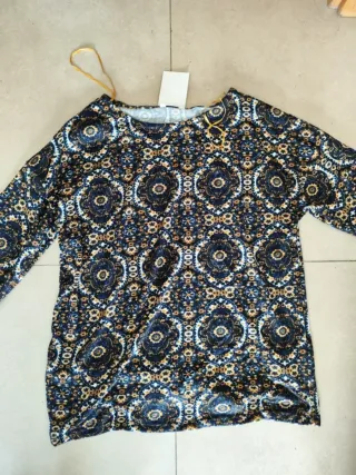 Jersey de manga larga con un estampado llamativo. NUEVO CON ETIQUETA. Marca Springfield - Diseño con motivos geométricos y florales. - Cuello redondo. - Tejido suave y cómodo.