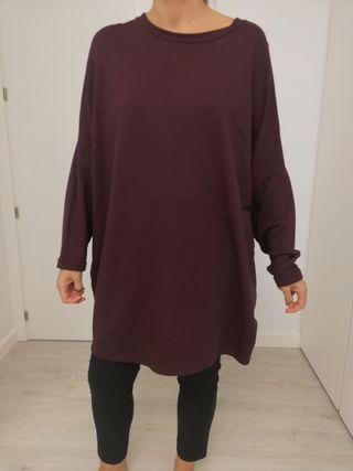 como nuevo talla L color beige claro queda holgado es largo queda como un vestido