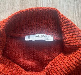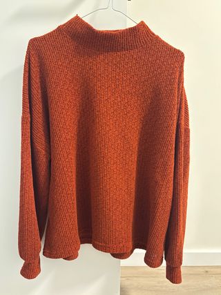 Jersey de punto en color mandarina. Composición: 55 % viscosa, 27 % poliéster, 18 % poliamida. Franja elástica en cintura, de 12 centímetros y aberturas laterales. - Cuello redondo. - Manga larga. - Tejido suave al tacto. Medidas en centímetros con la prenda extendida y sin estirar: largo desde el hombro, 58. Sisa (de axila a axila), 55.