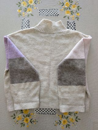 Jersey de punto con un diseño patchwork único y llamativo. - Mangas largas. - Cuello en V. - Combinación de texturas y parches.