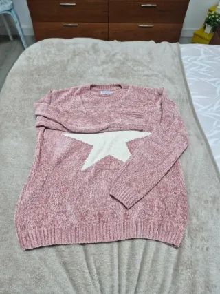 Jersey de punto suave en color rosa con un diseño de estrella blanca en el frontal. Es una prenda sin estrenar, ideal para añadir un toque divertido a tu look. - Tejido agradable al tacto. Súper gustoso. - Diseño de estrella grande. - pone xl pero es talla asiática, corresponde a una M. De sisa a sisa 53, largo 60 cm