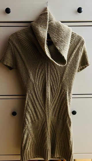 Jersey largo con cuello alto y manga corta. Presenta un diseño de punto con texturas. - Tejido de punto. - Cuello alto. - Manga corta.