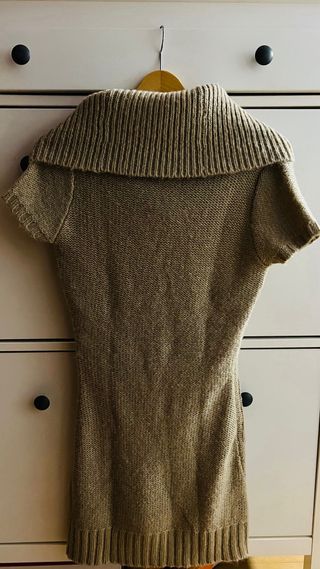 Jersey largo de punto fino con cuello en pico en verde militar de Zara. Talla M - Diseño holgado. - Manga larga. - Bajo recto. Medidas: Ancho: 70 cm Largo: 100 cm