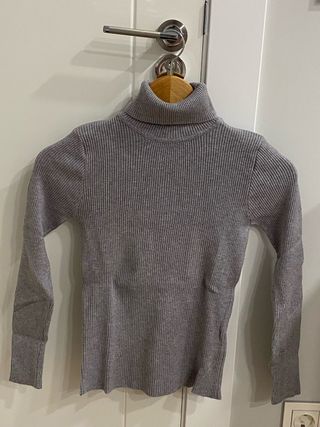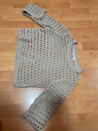 Jersey de punto Zara en color gris. Es una prenda cómoda y versátil. - Diseño de cuello redondo. - Manga larga. - Corte cropped.