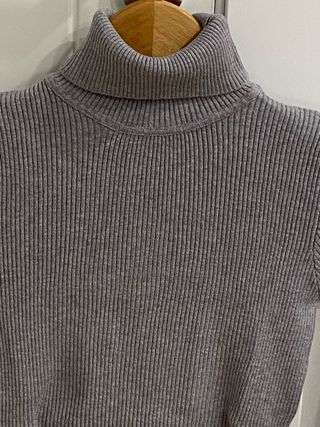 Jersey de punto de cuello alto con dibujo de espigas en la parte delantera y canalé en la parte trasera y las mangas. Medidas: 48 cm de ancho de pecho, 55 cm de largo.