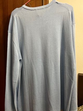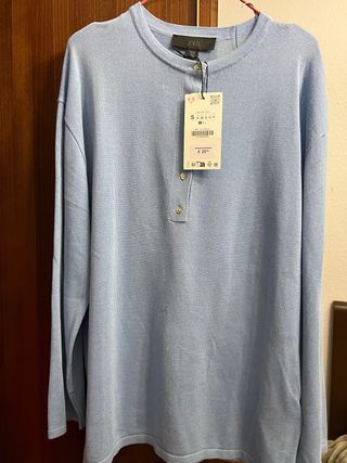 Jersey de manga larga en color azul de Zara. - Cuello redondo con botones. - Tejido suave y ligero.