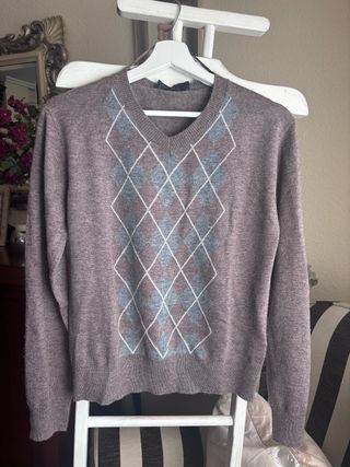 Jersey de punto fino con estampado de rombos. - Cuello pico. - Manga larga. - Diseño clásico.