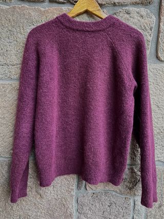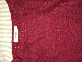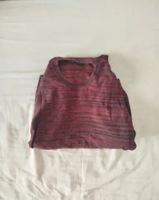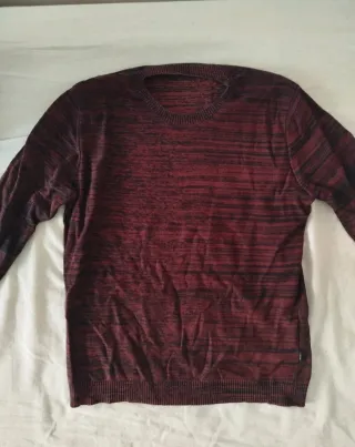 Jersey fino burdeos, talla L pero lo veo más estrecho como pegado sería una L slim fit M suelta Jersey de manga larga con un diseño jaspeado en tonos burdeos y negros. - Cuello redondo. - Puños y bajo elásticos.