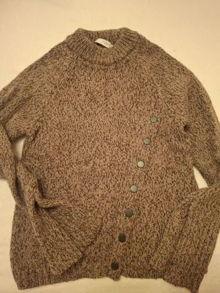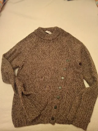 Jersey de punto jaspeado en tonos marrones. Presenta un diseño moderno con botones en un lateral. - Cuello redondo. - Manga larga. - Cierre de botones.