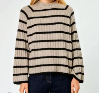 Jersey de punto con un diseño de rayas multicolor. Es una prenda cómoda y versátil. - Diseño de rayas horizontales. - Cuello redondo. - Manga larga.