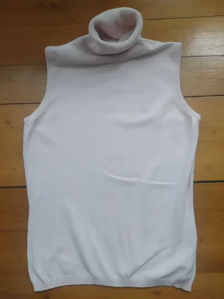 Jersey de punto sin mangas con cuello alto. Marca Induyco del Corte Inglés - Tejido suave y cómodo. -Color Rosa nude. -Hace talla 38 Medidas, sin estirar, axila a axila 44 cm. y largo 59 cm.