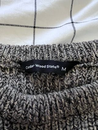 Jersey de punto en color gris. Diseño clásico y versátil. Talla M. Marca: cedar wood state - Cuello redondo. - Manga larga. - Tejido texturizado.