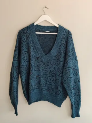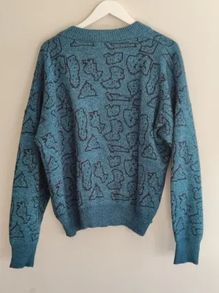 Jersey de punto con un diseño estampado y cuello en pico. Una prenda cómoda y con estilo años 80 - Manga larga. - Tejido con textura.