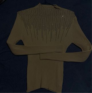 Jersey de manga larga con un diseño elegante y detalles brillantes. - Cuello alto. - Tejido de canalé. - Adornado con pedrería plateada. Brilla mucho y es elegante queda muy bonito El precio es negociable Estira es decir que puede ser tanto una M como una L