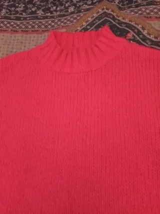 Jersey de punto grueso en color rosa intenso. Tiene un corte ancho y mangas largas. - Cuello redondo. - Puños y bajo acanalados.