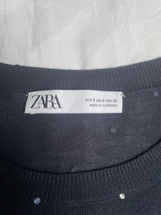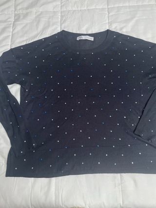Jersey de manga larga de Zara con un diseño llamativo. - Base de color azul. - Adornado con pequeños detalles brillantes dispersos por toda la prenda. - Cuello redondo.