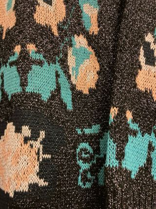 Jersey de punto con un llamativo estampado abstracto. - Diseño de cuello redondo. - Manga larga. - Puños y bajo acanalados. Sin uso. Los colores y el estampado son muy originales. Medidas en las fotos. Precio negociable
