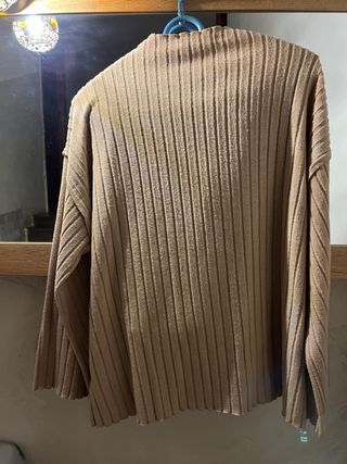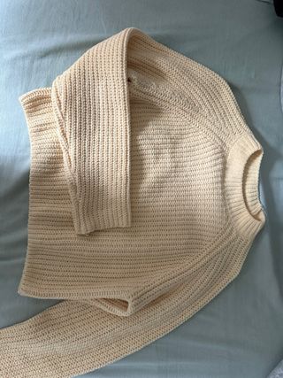 Jersey de punto de Zara con corte oversize. Es una prenda cómoda y versátil. - Cuello redondo. - Manga larga. - Bajo y puños de canalé.