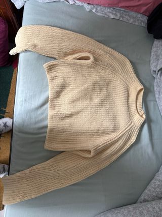Jersey de Zara de tacto suave y con pelo, con un toque brillante. - Diseño de cuello redondo. - Manga larga. - Corte cropped.