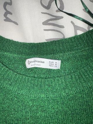 Jersey en color verde de ‘Zara’. En tejido acanalado de algodón 100%. Diseño calado. Con cuello alto. Manga larga. Talla: M